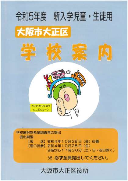*令和5年度 新入学児童・生徒用「大阪市大正区学校案内」の冊子が「入校許可証」となりますので、当日は必ずご持参ください。
