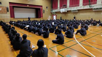 本日(4月10日)、3学年そろって1学期始業式を実施しました。