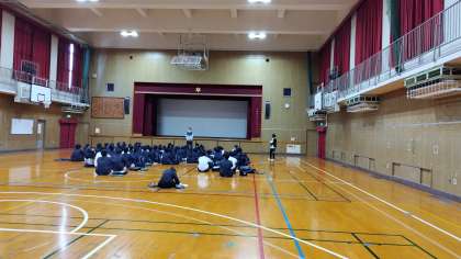 本日(4月28日)、体育館で、一泊移住終了後の健康観察をしました。