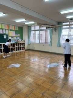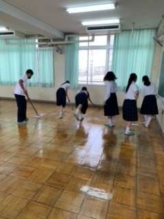 大清掃が終わり、各教室では整備委員と有志の生徒でワックスがけを行ってくれました。