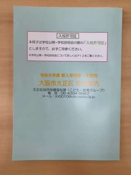 ご来校の際は、次の「令和6年度 大阪市大正区 学校案内」の