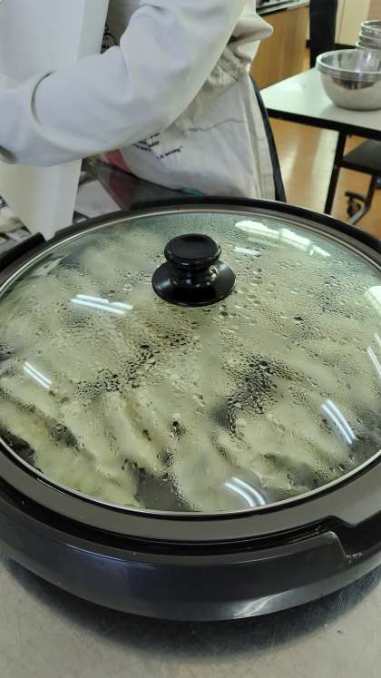 手作り餃子蒸しパンの制作です。みんな熱心に実習に取り組んでいました。