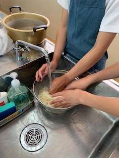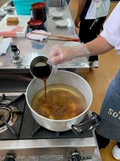 出汁にしょうゆ・みりんを加え、一煮立ちさせます。