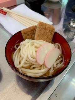 出汁を張って、揚げとかまぼこを盛り付けて…