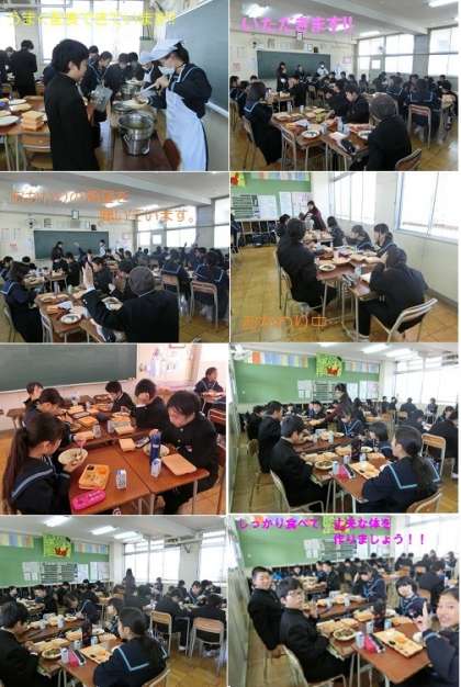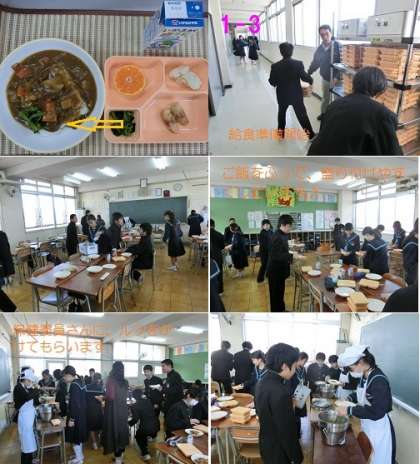 今日は1−3の給食風景を載せています。今日は子どもたち人気のカレーライス!自分でご飯をお皿に盛り付け、保健委員さんにルウを配食してもらいます。ご飯の容器を数回ふって、お皿に盛り付けやすくするのがポイントです♪カレーライスの日は、特におかわりも多く、先生方も大忙しです☆しっかり食べて、風邪に負けない丈夫な体を作りましょう!!