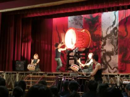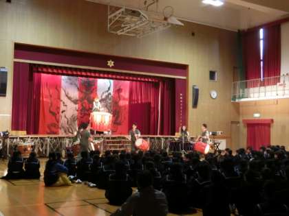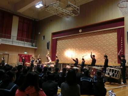 途中には、生徒自身による和太鼓体験演奏もありました。