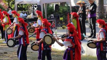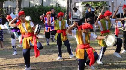 エイサーの衣装を身にまとい、「がじまるの会」の皆様と一緒に、