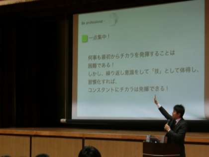 全国の中学・高校などで教育講演会の講師をされている的場亮さんをお迎えして、「夢をかなえるためのコツ」をテーマにご講話いただき、4つの大切なキーワード「自分で選択する」、「憧れを持つ」、「一点集中」、「感謝」を中心に「夢をかなえる」秘訣を伺いました。