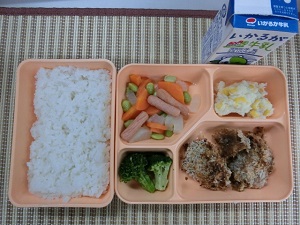 ☆「鶏肉のソース焼き」は、塩、こしょう、ワインで下味をつけた鶏肉に、トンカツソース、ウスターソース、小麦粉を合わせたものをつけ、パン粉をかけて焼いています。