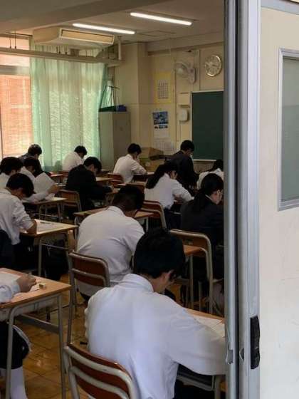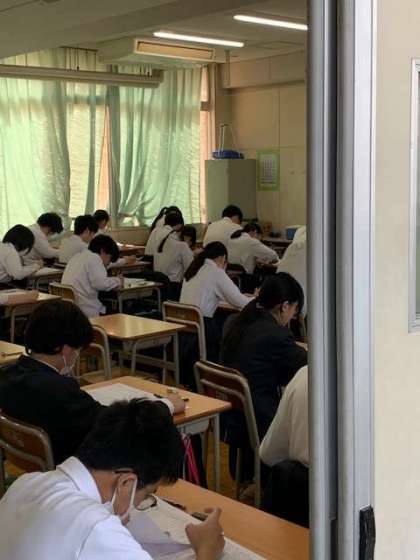 3年生の国語のテストです。みんな真剣に取り組んでいます。