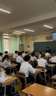 1年生の技術、2年生の英語、3年生の社会の様子です。