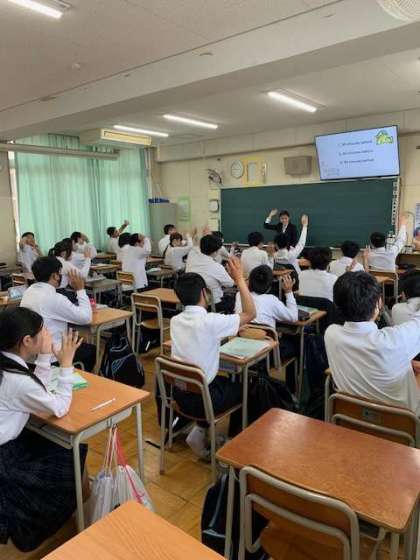 本日2限目に3年2組で、三島先生が研究授業を行いました。教育センターからもアドバイザーの先生が来られ他の先生も多数参観に来ていました。