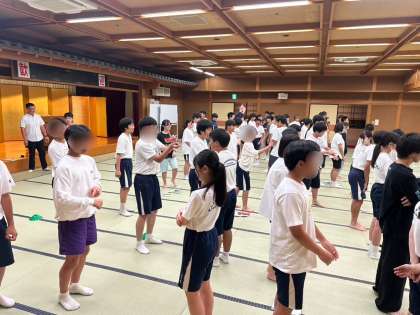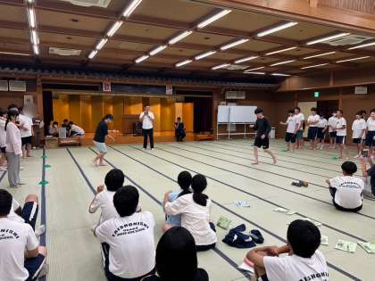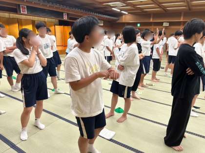 全員参加種目は各班対抗でジェスチャーしりとり、スプーンお玉リレーをしています!