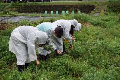 【写真上】小雨の中、山菜取り!