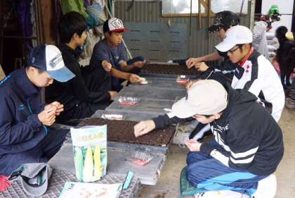 【写真中】とうもろこしの種の仕分け!