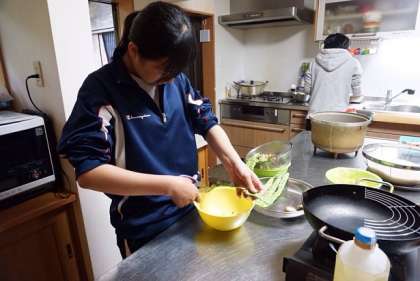 【写真下】山菜ピザ作り仕込み!