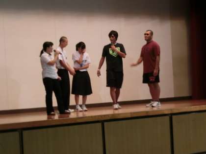 途中、「薬物の誘いを断れるか?」を生徒自身がロールプレイで実演してみる場面もありました。