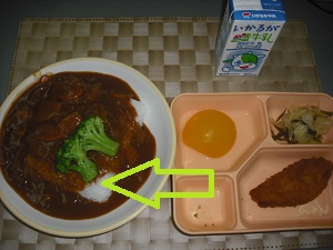 ☆今日は洋風の献立です。「ハヤシライス」はご飯をお皿に移し、ハヤシルウをかけていただきます。おかずの容器に入っている「ブロッコリー」をトッピングしていただきましょう。「海そうサラダ」には、茎わかめをキャベツを使っています。茎わかめとは、わかめの茎の部分をいい、コリコリとした食感が美味しい食材です。