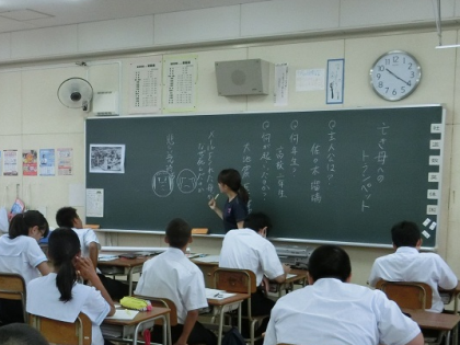 1年生は、「良心のめざめ」をテーマに「銀色のシャープペンシル」、2年生は「力強く生きる」をテーマに「亡き母のトランペット」、3年生は「いじめを許さぬ心」をテーマに「卒業文集最後の2行」をそれぞれ題材に授業を展開しました。