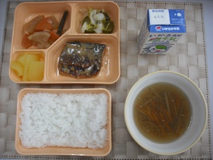 ☆今日は立冬です。立冬は冬の始まりを意味しています。この頃になると各地で紅葉が進み、北日本では初雪の便りが聞かれます。また、日暮れが目立って早く感じられるようになります。今日の給食には、寒い季節にもおいしく食べることができるよう、汁ものはでんぷんでとろみをつけ、冷めにくくしています。具材には鶏ひき肉と秋冬が旬であるごぼうとにんじんを使用しています。しっかり食べて、寒さが吹き飛びましたか?