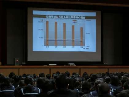 12月21日(水)3時間目、体育館にて、大正警察署の方をお迎えして、生指講話がありました。