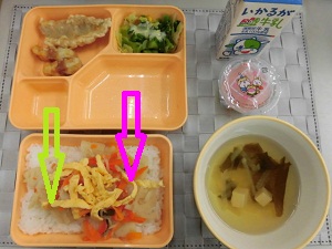 ☆「ちらし寿司」は、米飯に「ちらし寿司の具」と「錦糸卵」を散らしていただきましょう。