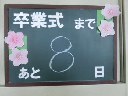 〈追伸〉職員室前の卒業式カウントダウン黒板も一桁となりました。