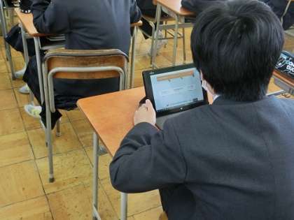全員がタブレットを使って、授業を受けています。