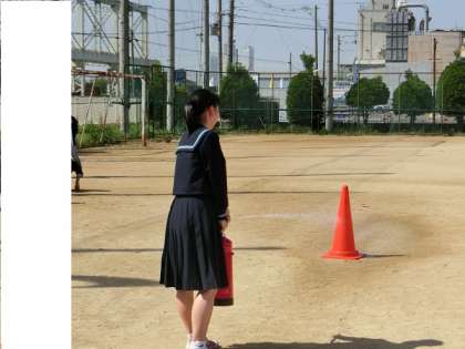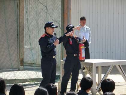 消防署の方々のご協力により、各クラス代表による消火器の使い方訓練も実施しました。