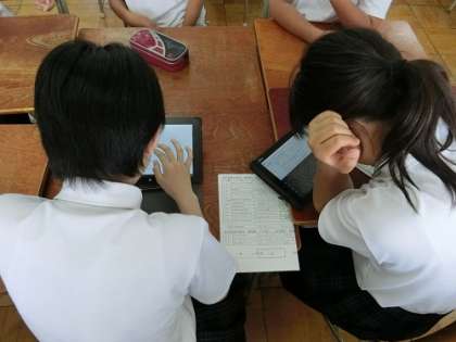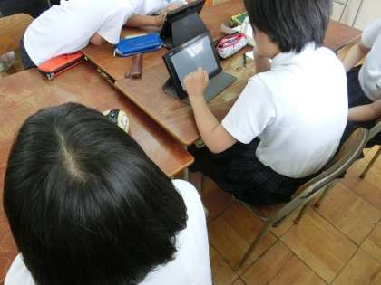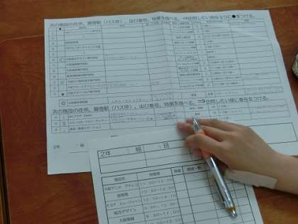 それに向けた取り組みとして、タブレットを使い、班で行先や行き方等を調べています。