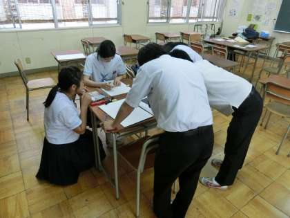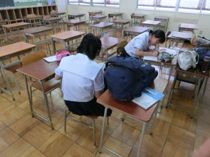 5月26日(金)放課後 夕方5時を過ぎても修学旅行に向けて、係生徒が活動していました。