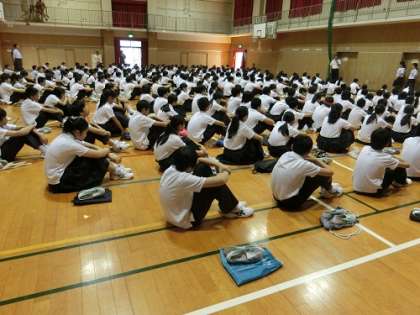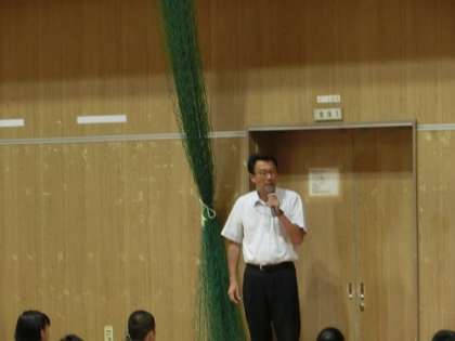 全校集会で、校長先生は「中庭のあじさい」から、講話をされました。
