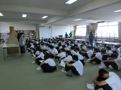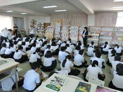 本日6時間目、図書館補助員の方から、1年生を対象に図書館の使い方を説明していただきました。