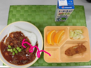 ☆「ハヤシライス」は、専用の深皿に入れたご飯に温かい「ハヤシルウ」をかけ、仕上げに「枝豆」を加えて食べましょう。