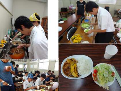 理科部が日頃栽培した野菜を使って、7月12日、実習体験をしました。夏野菜カレーを作り、試食しました。