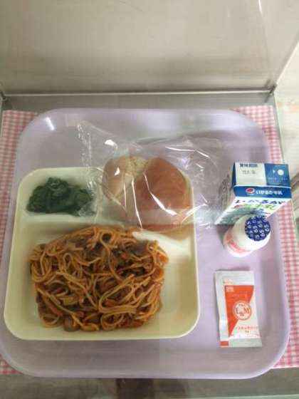 ☆今日の「グリーンアスパラガスのサラダ」には、「ノンエッグドレッシング」がついています。これは、マヨネーズのような味がしますが、卵を使っていないマヨネーズ風の調味料です。