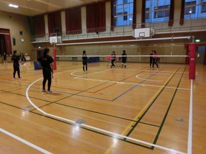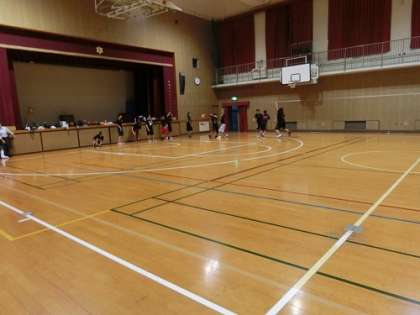 体育館では、所狭しと女子バレーボール部と女子バスケットボール部が練習していました。