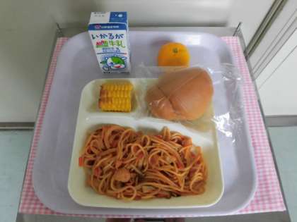 小学校の「給食の見本」は給食調理室の前にありますが、大正西中学校の「給食の見本」は3階の配膳室前にあります。いつも配膳員さんが、食器のどの場所に何のおかずを配食したらよいのか、量はどの位かなど目で見てもわかるように準備をしてくださっています。4限目が終わり「給食の見本」を見た生徒が「やった〜今日はスパゲッティだ♪」と言って教室に戻っていきました。それを聞いてホッコリ、中には「全然足りません」というクラスもあり、嬉しい悲鳴の1日でした。