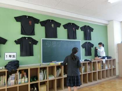 3階だけじゃなく、体育館でも「階段アート」と「看板」が展示されていました。