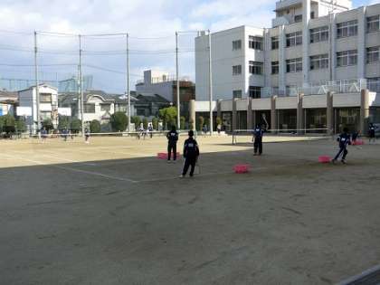 グランドでは、ソフトテニス部が朝昼と二部練習です。