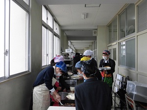 写真は、2年生の給食当番の様子です。