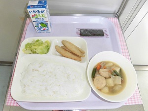 「わかさぎフライ」は初登場の献立です。骨ごと食べることができるため、「カルシウム」を豊富にとることができます。「カルシウム」は骨や歯を形成するだけでなく、血液を凝固したり、筋肉を収縮するなどの働きもします。よくかんで、残さず食べましょう♪