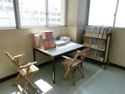 机と椅子も設置され、休憩時間には資料を見ている生徒もいました。
