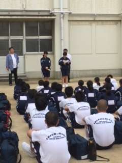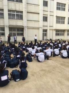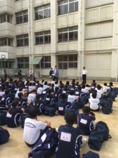学年主任の笠谷先生に続いて校長先生からあいさつをいただき、生徒代表から一泊移住に向けての決意が発表されました。