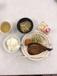 メニューは魚ともやしのナムル、味噌汁とふりかけ、ヤクルトです。