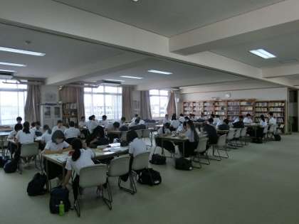 5月22日(火)放課後に、3年生が図書館で、中間テスト前の学習会を行いました。たくさんの生徒たちが足を運び、自主学習に励んでいました。先生に質問する生徒も見受けられ、とても意欲的に取り組んでいました。