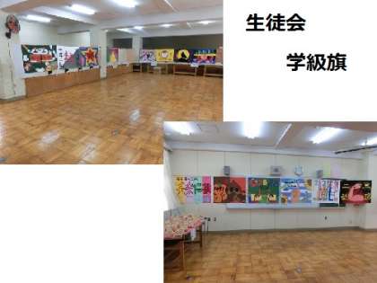 技術科の作品と生徒会の学級旗です。