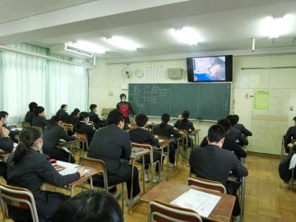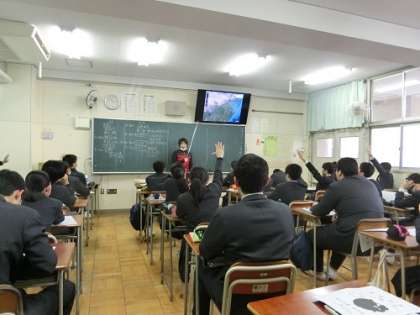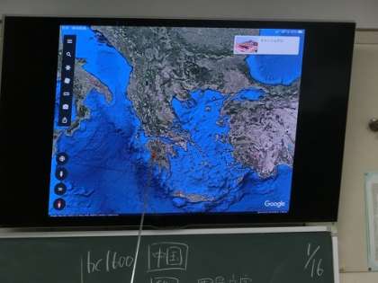 電子黒板を使い、地理と歴史を融合させた授業でした。