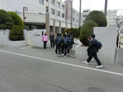 毎朝の登校のようすです。1年生は明日まで、学年休業です。少し生徒の数が少なく感じます。