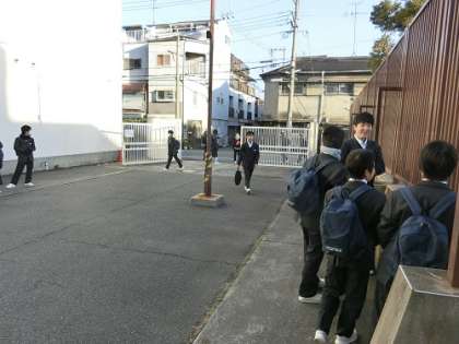 班ごとに集合し、7時55分〜8時40分に出発していきました。